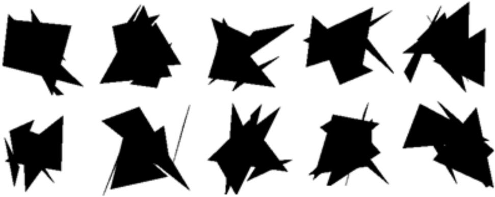 実験は2つのセッションで構成されていた。最初のセッションでは、参加者に図形を1つずつ画面に表示し、「角の数を数えて、その数字のキーを押す」という課題を行わせた。記憶するよう求めてはいない。このセッションで見た図形は20種類で、それぞれ2回ずつ計40回提示された。